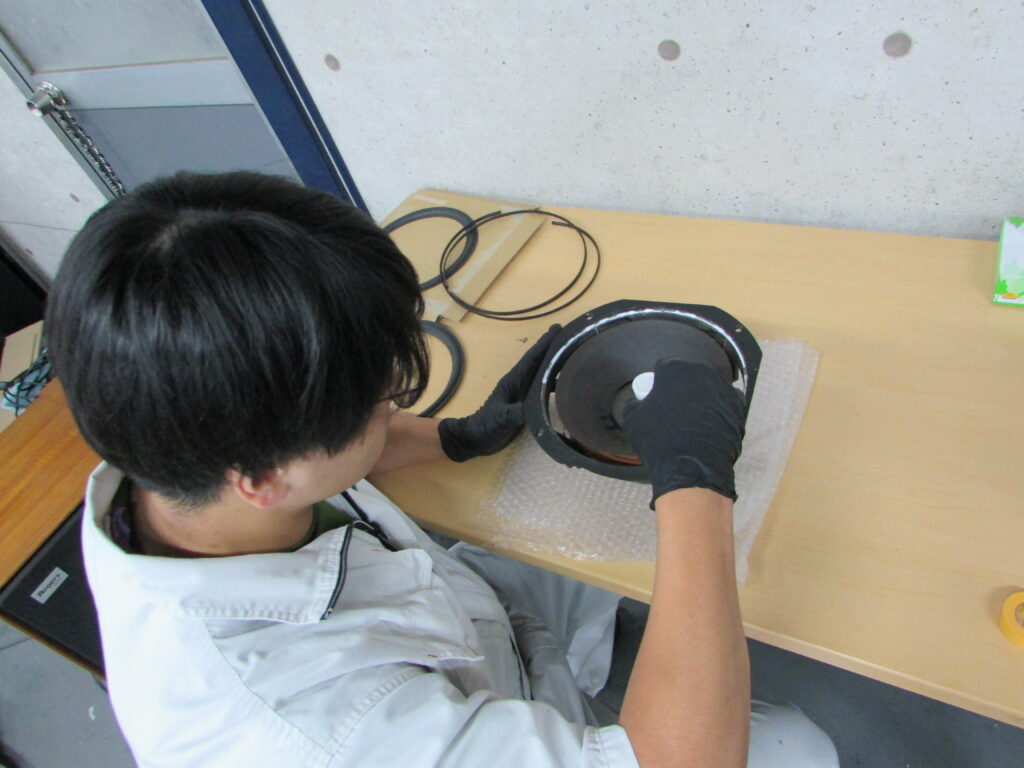 仕上がったウーファーをエンクロージャーに収めて完成です。