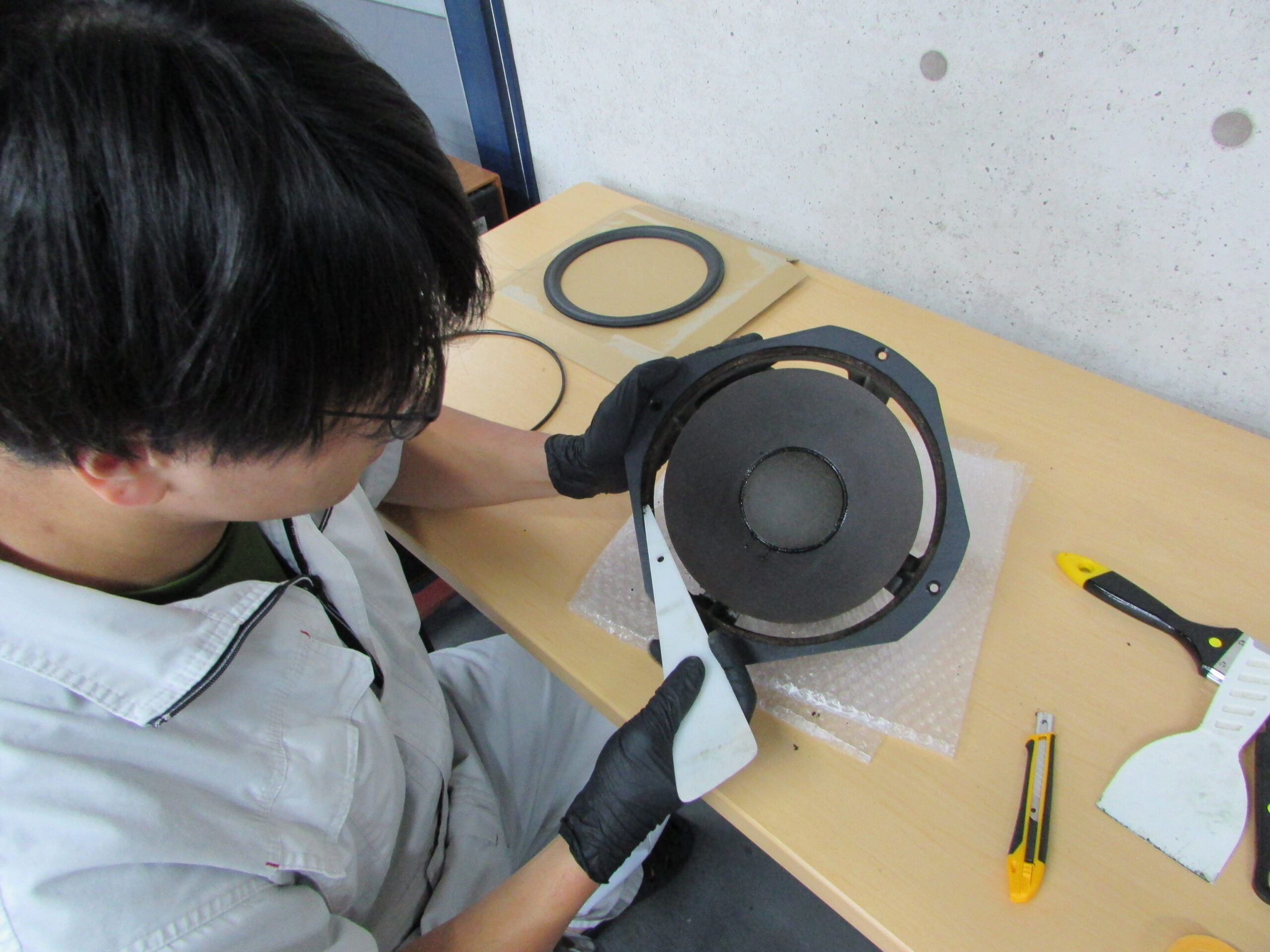 お問い合わせ無しでウーファーを送ってこられても対応できません。(エッジ・センターキャップが欠品により対応出来ないモデルが存在する為)