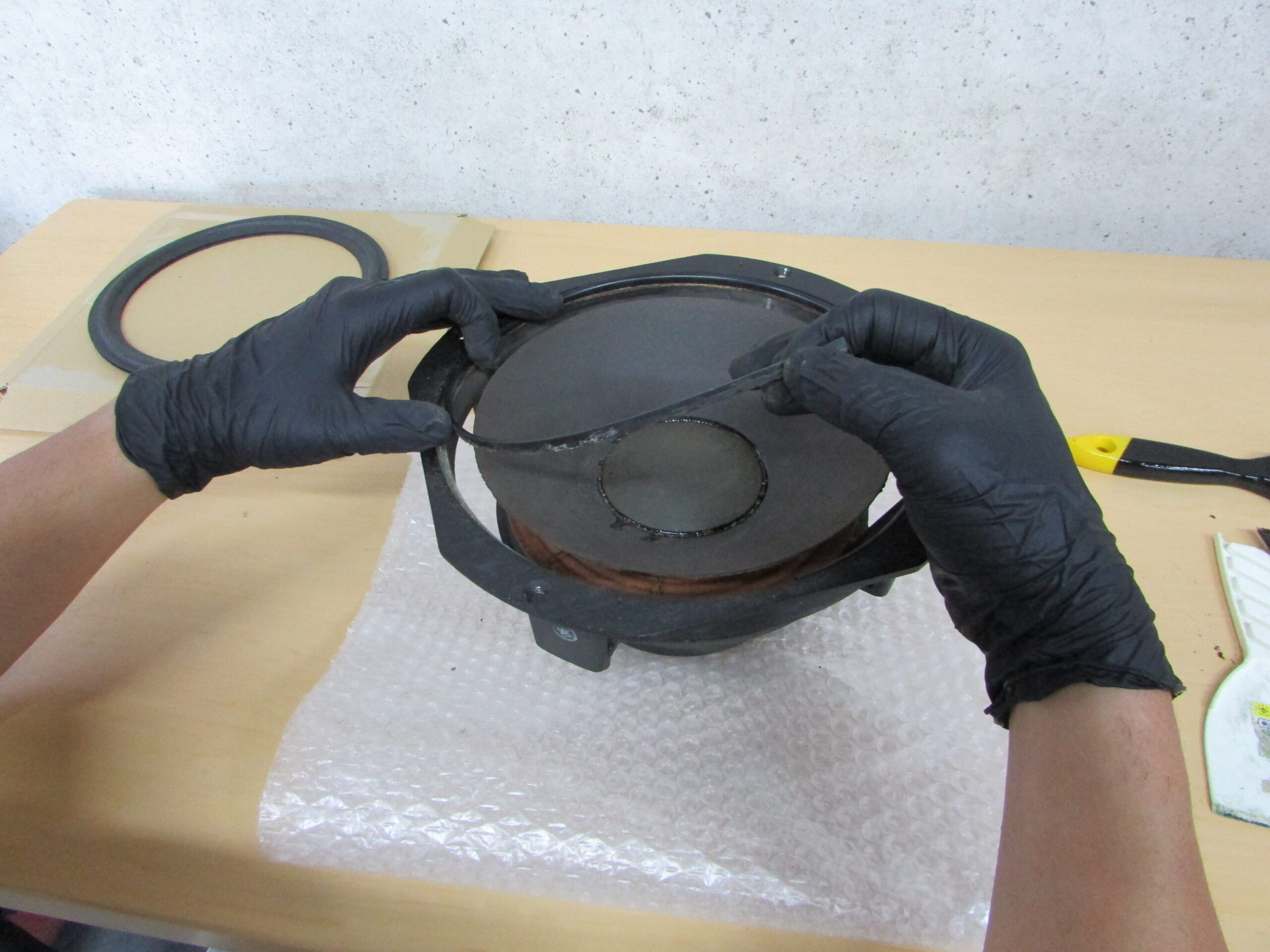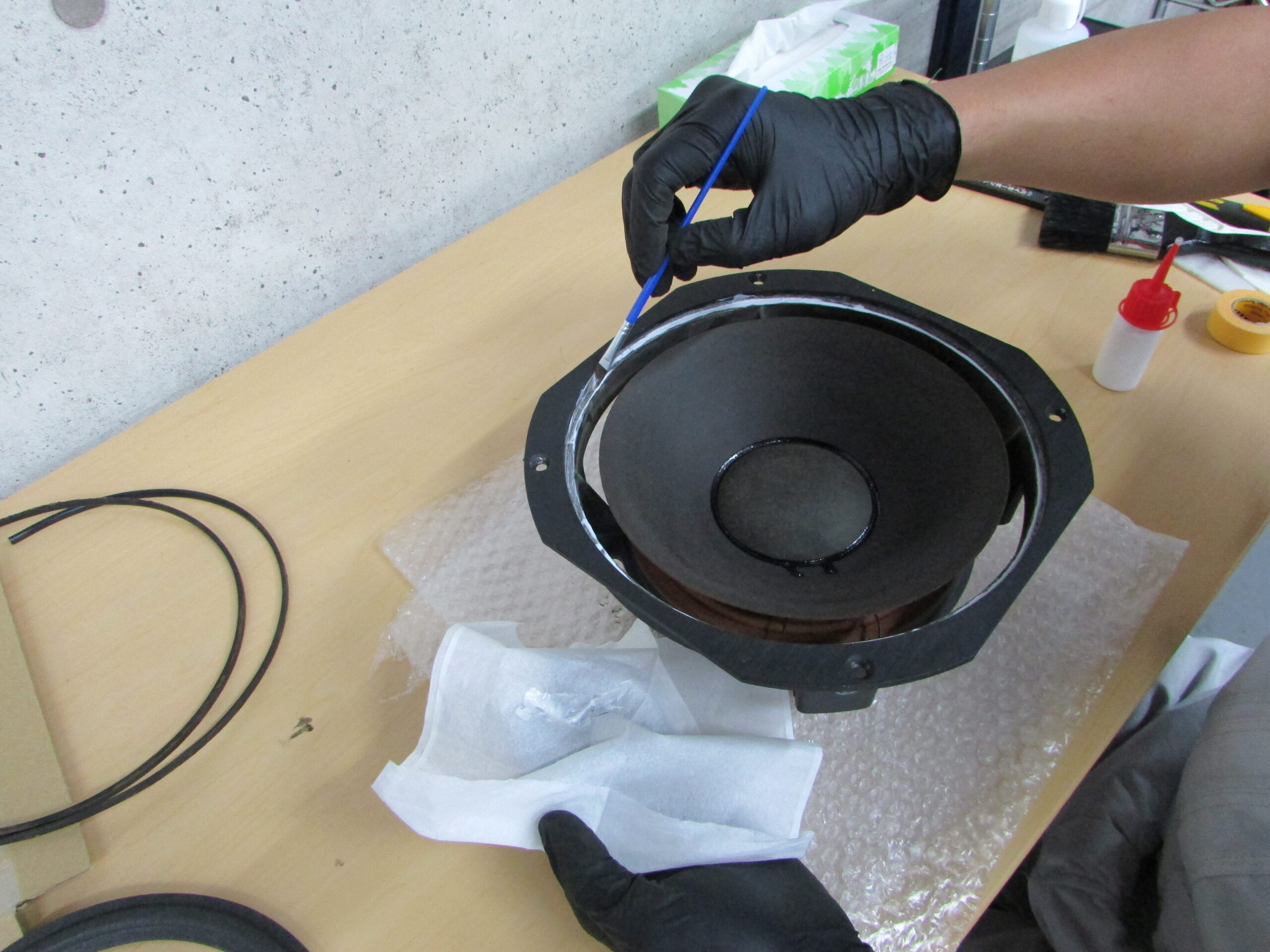ボイスコイル、コーン紙の状態も良好でしたのでエッジの張替え交換だけで良いと判断しました。