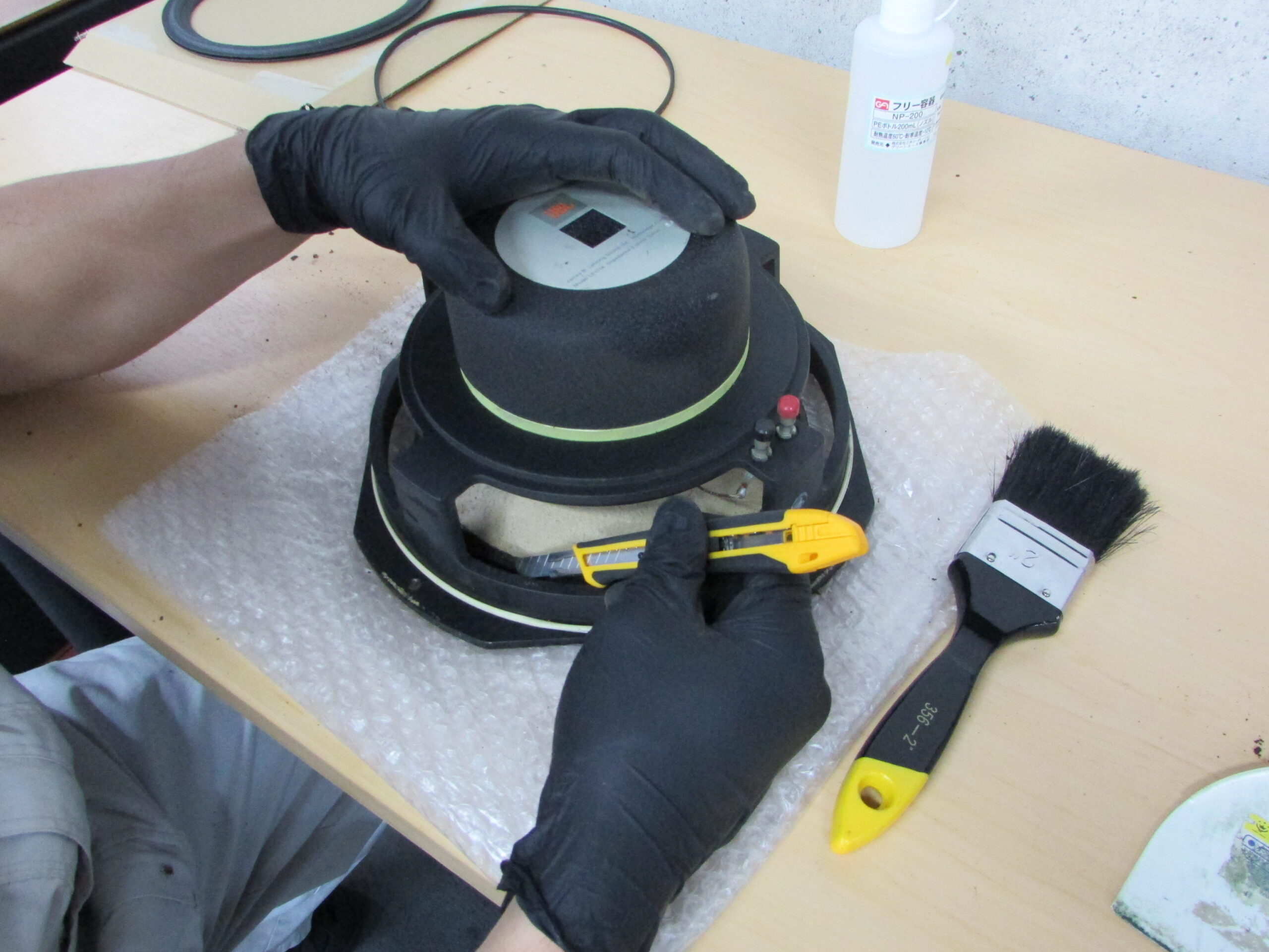 エンクロージャーを傷つけないように当て布も使い慎重に作業を進めます。